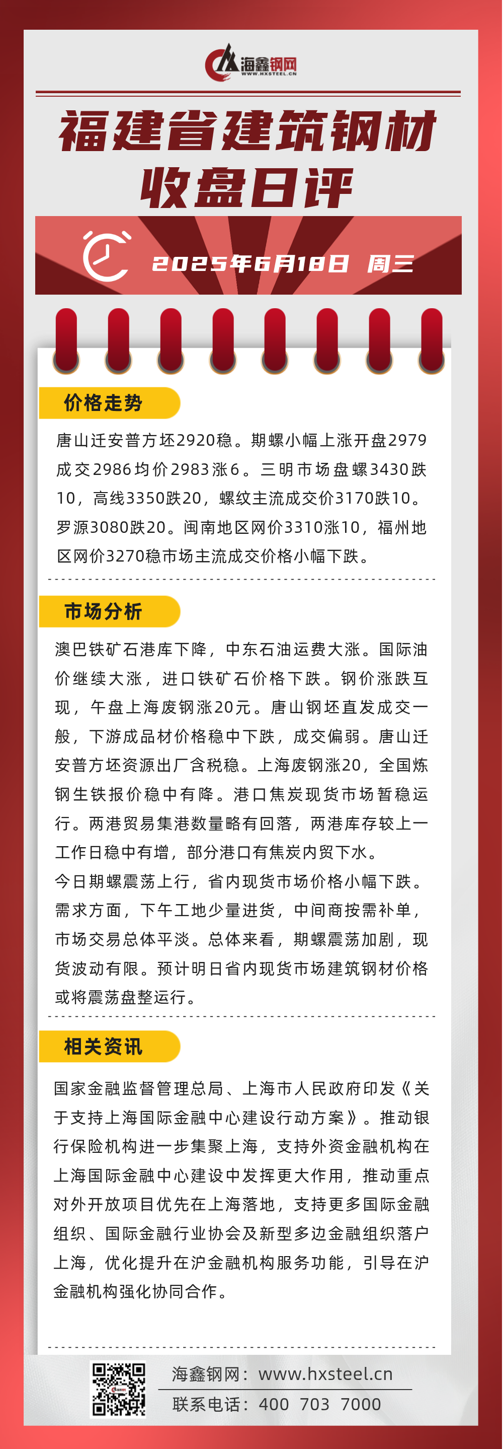 6月18日福建省內建筑鋼材收盤日評