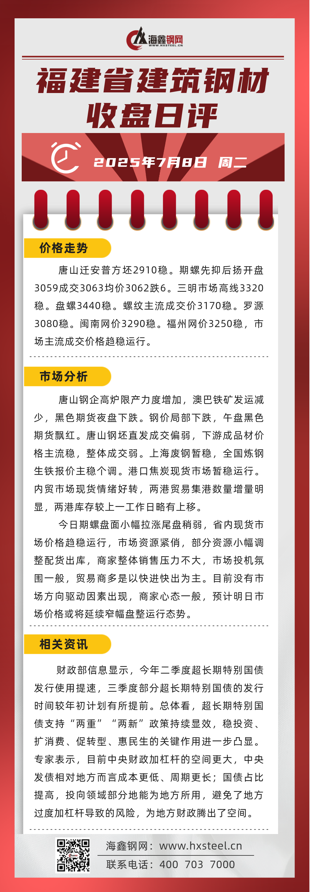 7月8日福建省內(nèi)建筑鋼材收盤(pán)日評(píng)