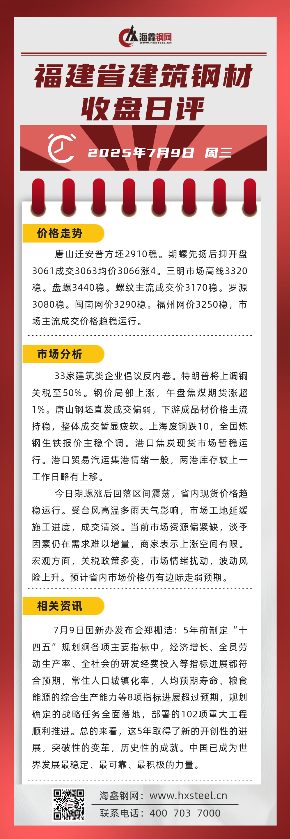 7月9日福建省內(nèi)建筑鋼材收盤日評