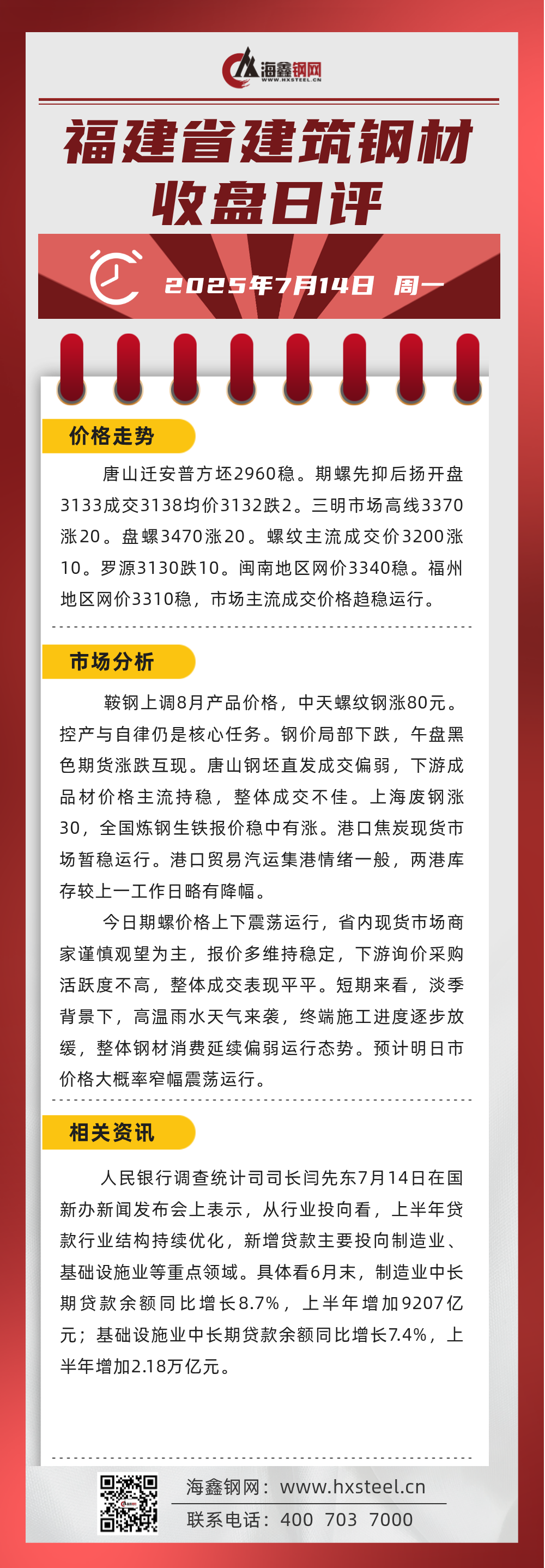 7月14日福建省內建筑鋼材收盤日評