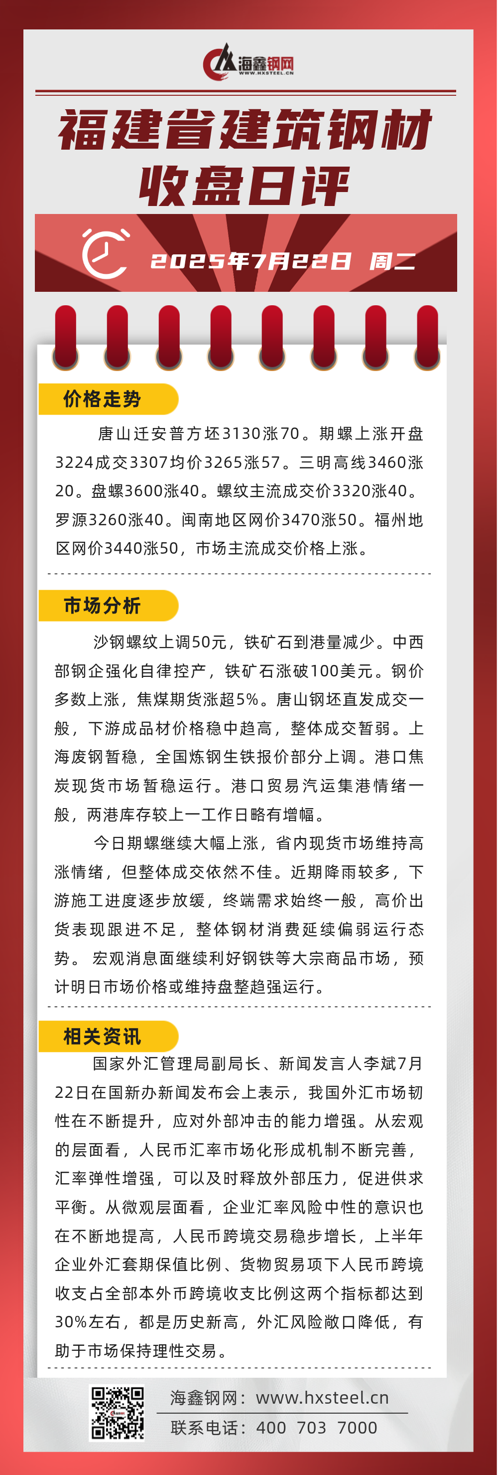 7月22日福建省內(nèi)建筑鋼材收盤日評