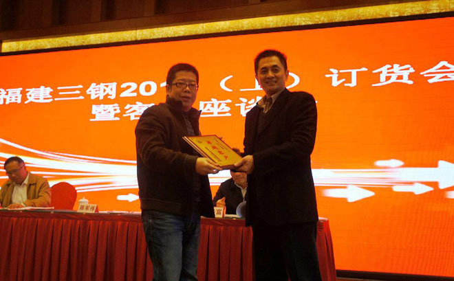 2013年12月21日,福建三鋼2014(上)訂貨會(huì)暨經(jīng)銷商座談會(huì)上授予福建鑫三元商貿(mào)有限公司2013年度“卓越客戶”的稱號(hào)。